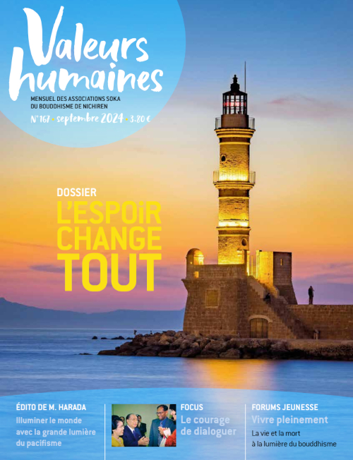 Valeurs humaines est le mensuel des associations Soka du bouddhisme de Nichiren, édité par l'Acep. Témoignages, dossiers thématiques, textes d'intérêt général sur l'histoire du bouddhisme et sa culture, Valeurs humaines s'adresse à l'ensemble des pratiquants francophones du bouddhisme de Nichiren, mais aussi à des personnes s'intéressant au bouddhisme.