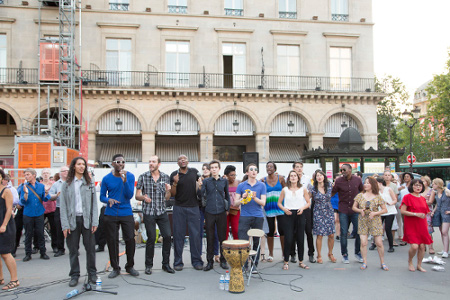 Le mouvement Soka a célébré le 21 juin dernier la Fête de la musique. À Paris notamment, le groupe de hip-hop 1Pulsion et les chorales Constellation, Phénix, Clair de lune et Soleil accompagnées de musiciens ont donné une représentation pleine d'entrain, place du Palais Royal. Le lieu était rehaussé pour l'occasion de décorations florales, réalisées par le groupe Indigo. Musiques et danses se sont enchaînées dans une ambiance festive !