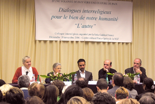 Le colloque « Dialogues interreligieux pour le bien de notre humanité - L'autre » a été organisé par le mouvement bouddhiste Soka, en novembre 2006, à Paris, Nantes, Trets et Lyon.
