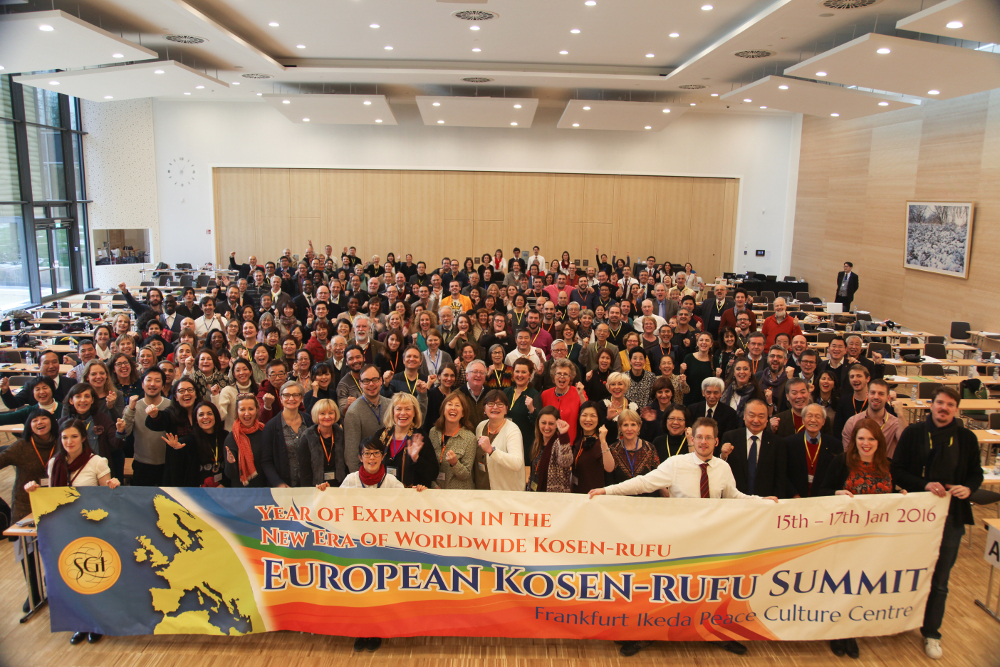 Du 15 au 17 janvier dernier s’est tenu le sommet annuel de la SGI-Europe, au nouveau centre bouddhique Soka de la SGI-Allemagne, à Mörfelden-Walldorf, près de Francfort. Deux cent vingt représentants et responsables de la SGI venus de trente-deux pays ont pris une impulsion commune pour lancer une grande dynamique d’expansion cette année.