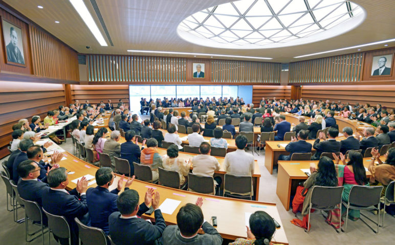 Le 10 novembre, 280 représentants de la SGI de 70 pays et territoires se sont réunis dans le Hall du Grand Voeu pour kosen rufu, à Shinanomachi, Tokyo, pour ratifier la Constitution de la Soka Gakkai, adoptée en septembre 2017.