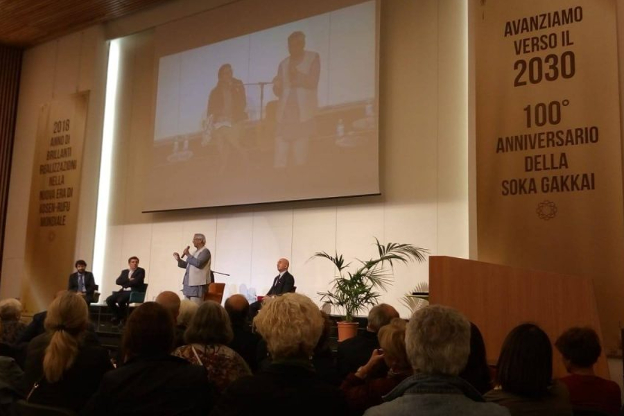 Le 1er octobre 2018, la SGI-Italie a décerné au Pr Muhammad Yunus le prix « Nouvelle Renaissance ». La cérémonie a eu lieu au centre culturel de la paix de Milan, devant un auditoire de plus de 600 personnes.