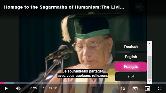 L'enregistrement vidéo de cette conférence est désormais disponible sous-titrée en français sur le site daisakuikeda.org :