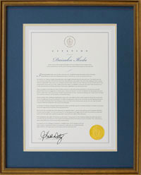 Diplôme du doctorat Honoris Causa remis par l'Université de Boston.