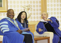 Dans son discours, le Dr Motley a présenté M. Ikeda dans les termes suivants : « Grand leader bouddhiste, homme de paix, écrivain, pédagogue et fondateur d'instituts mondiaux pour l'amélioration de l'humanité ». Il a également loué son soutien envers la responsabilisation individuelle et l'engagement social. M. Ikeda a fait le commentaire suivant : « Je suis profondément honoré. Les distinctions académiques que j'ai acceptées sont toutes au nom de la SGI et de ses membres dans le monde entier. Cela constitue une reconnaissance de leurs multiples contributions. En tant que citoyen individuel, je redoublerai mes efforts en faveur de la paix, des échanges culturels et de l'éducation. »