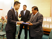 Remise de la pétition à l'ambassadeur Leslie B. Gatan.