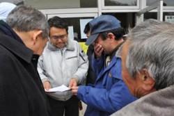 Depuis le jour du séisme, aucune nouvelle n’était parvenue des deux centres Soka à Ishinomaki, ville côtière près d’une péninsule au nord-est de la préfecture de Miyagi. Le 14 mars, le centre bouddhique du mouvement Soka de Tohoku dans la ville de Sendai a reçu un message l’informant que de nombreux évacués étaient hébergés dans le Centre pour la Paix d’Ishinomaki. Le même jour, des croyants du mouvement Soka sont partis en voiture vers ce centre pour y livrer des aides de secours. Après avoir cherché les routes les moins endommagées et été dévié à maintes reprises, ils sont arrivés au Centre dans la soirée.