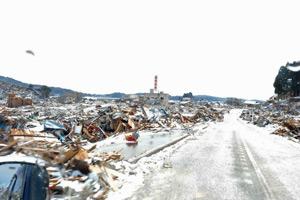 Après le passage du tsunami sur Kesennuma, des incendies ont éclaté, bloquant de nombreuses routes et coupant toute communication. Akihiko Morishima, responsable du mouvement Soka pour la région de Miyagi, a pris la route pour trouver par quel moyen atteindre Kensennuma, puis a réussi à arriver jusqu’à la maison d’Hitoshi Kojima, un responsable local.