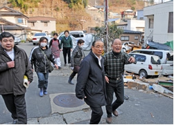 ![Le responsable de la préfecture d’Iwate, Nintei Kasai (deuxième en partant de la droite) visite Kamaishi (13 mars). [© Seikyo Shimbun]](/images/stories/societe/aide-sgi-tsunami-japon-suite2-2011-3.jpg)