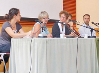 Michèle Lamb (2e à gauche) intervient sur le sujet « Le bouddhisme et les droits humains à l'âge du nationalisme ». photo © SGI-UK