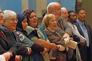 Le 11 janvier, la SGI-USA faisait partie des onze communautés religieuses à participer à l'événement « Rappelez-vous ! Célébrez ! Agissez ! », un service multiconfessionnel à l'occasion de la Journée MLK, à l'église National City Christian Church. Durant ce service organisé par la Conférence interconfessionnelle de la région métropolitaine de Washington, des prières ont été offertes et les représentants de différentes communautés religieuses se sont exprimés. Dans son discours, Jo Reed, de la SGI-USA, a évoqué la nécessité de s'engager sur la voie de la non-violence comme base pour affronter les défis du monde actuel. Le public a également pu assister à la lecture du discours historique de Martin Luther King, « I Have a Dream », et à des représentations musicales.