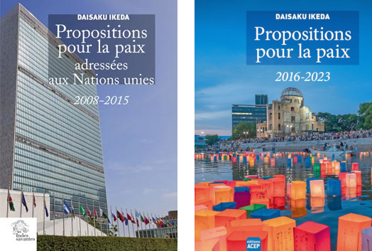 A noter que les dernières propositions pour la paix de Daisaku Ikeda ont été publiées en deux recueils : Propositions pour la paix adressées aux Nations Unies 2008-2015, éditions Les Indes Savantes, 2015, et Propositions pour la paix 2016-2023, éditions Acep, 2025.