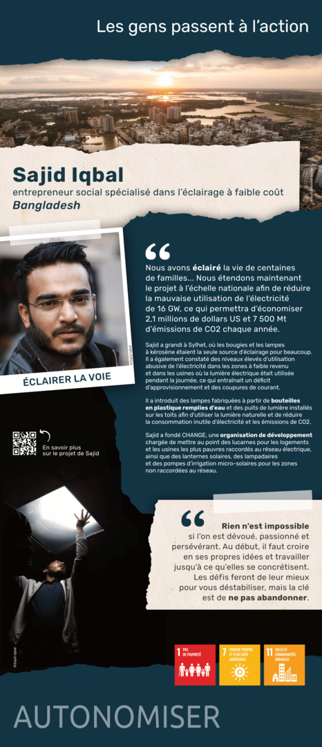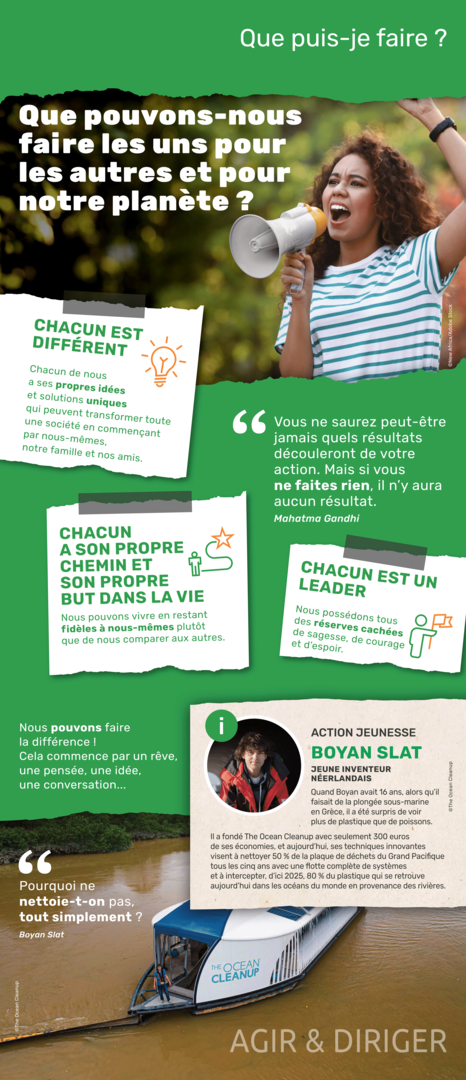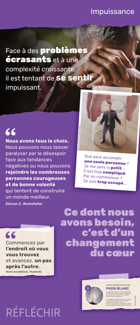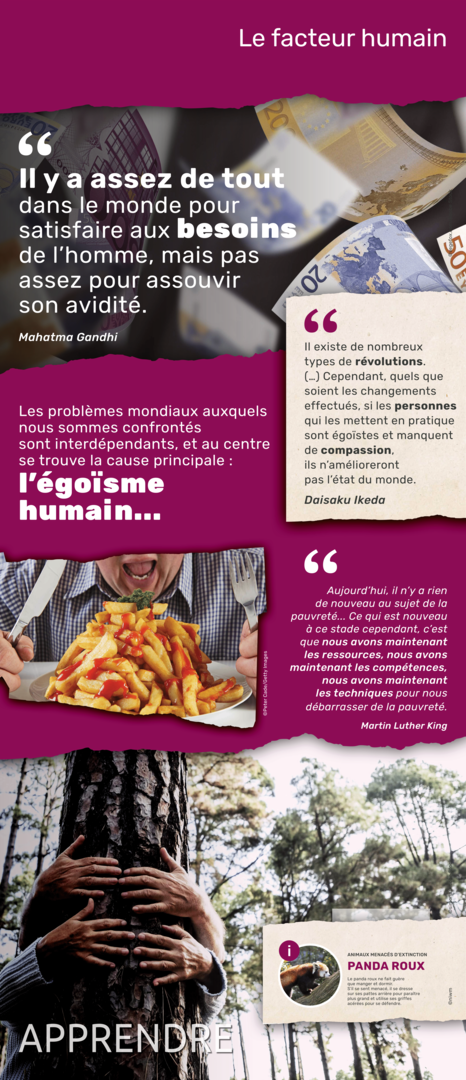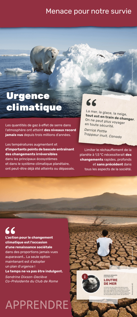 Il constitue le fil conducteur de cette exposition dans laquelle sont présentés les enjeux auxquels notre société contemporaine est confrontée et les moyens d’agir à notre échelle, dès aujourd’hui.