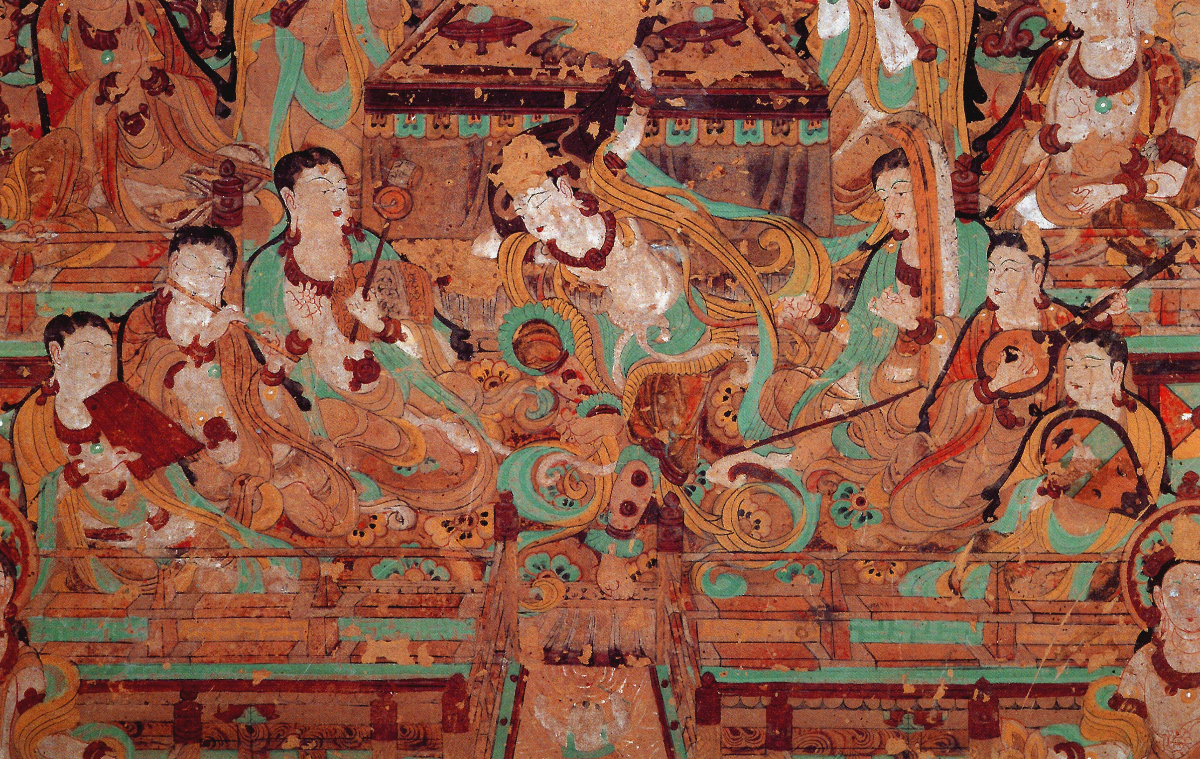 - Musiciens dépeints sur une fresque murale, Mogao, cave n°2. [© Dunhaung Academy]